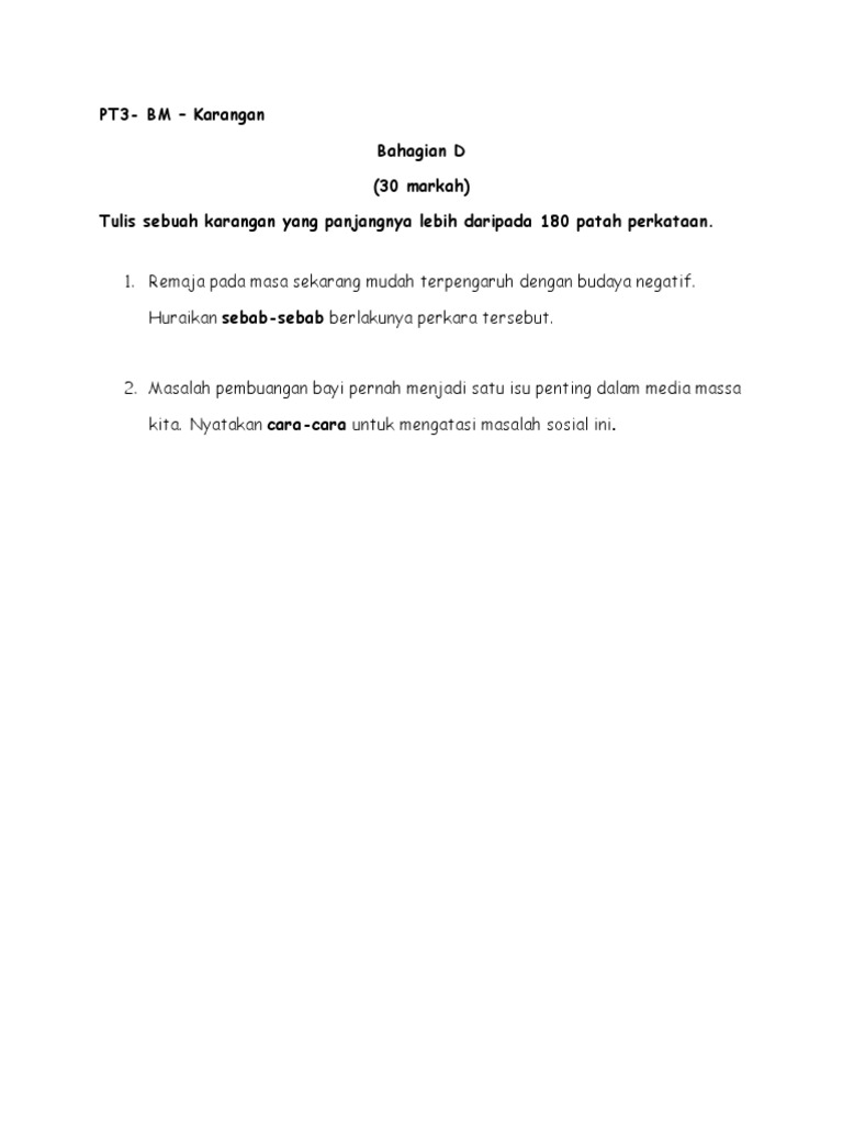 Contoh Soalan Karangan Bahasa Melayu Pt3
